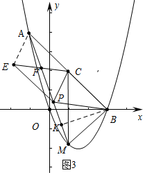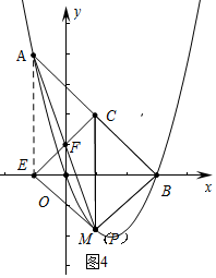¢ÛÈçͼ4ÖУ¬µ±PÓëMÖØºÏʱ£¬Ò×Ö¤ËıßÐÎAEPCÊÇÆ½ÐÐËıßÐΣ¬¡÷EPCÓë¡÷APCÖØµþ²¿·ÖµÄÃæ»ýÊÇ¡÷ABPµÄÃæ»ýµÄ$\frac{1}{4}$£¬´ËʱAP=AM=2$\sqrt{10}$£®![]()