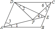 分析 由AD=DE,∠BAE=∠EDF,可证得∠DAB=∠3+∠1=∠2+∠4=∠DFA,继而证得D,C,E,F四点共圆,然后由圆周角定理,证得∠2=∠5=∠1,得到∠3=∠6,又由圆的内接四边形的性质,证得∠3=∠CDF,继而证得结论.