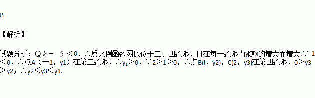 已知点A(一1,y1),B(l,y2),C(2,y3)是函数y= 一