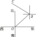 如图,一只蚂蚁从O出发,沿着北偏东45°的方向爬行2cm,碰到障碍物(记作B)后折向北偏西60°的方向爬行3cm,(此时位置记作C).