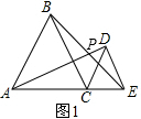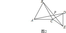 £¨2£©Ö¤Ã÷¡÷ACD¡Õ¡÷BCE£¨SAS£©£¬µÃµ½AD=BE£¬¡ÏDAC=¡ÏEBC£¬¸ù¾Ý¡ÏBPA=180¡ã-¡ÏABP-¡ÏBAP=180¡ã-¡ÏABC-¡ÏBAC£¬¼´¿É½â´ð£®
