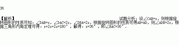 如图,将△ABC绕点A顺时针旋转,使点C落在边AB上的点E处,点B落在点D处,连结BD,如果∠DAC=∠DBA,那么∠BAC度数是______度.