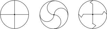 把一个圆形分成4个面积相等的四部分,请画出几种不同的分法.
