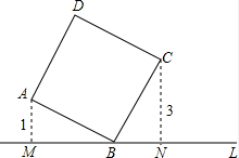 分析 作AM⊥l于M,CN⊥l于N,则∠AMB=∠BNC=90°,AM=1,CN=3,先证出∠BAM=∠CBN,由AAS证明△ABM≌△BCN,得出BM=CN=3,根据勾股定理求出AB2,即可得出正方形的面积.