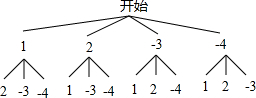 分析:首先根据题意画出树状图,然后由树状图求得所有等可能的结果与这两张卡片上的数字之积为负数的情况,再利用概率公式即可求得答案.