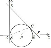 如图,一次函数y=-x+b(b>0)的图象与⊙P相切于点C,与y轴交于点E,与x轴交于点F,连接PC,易得∠PCF=90°.![]()