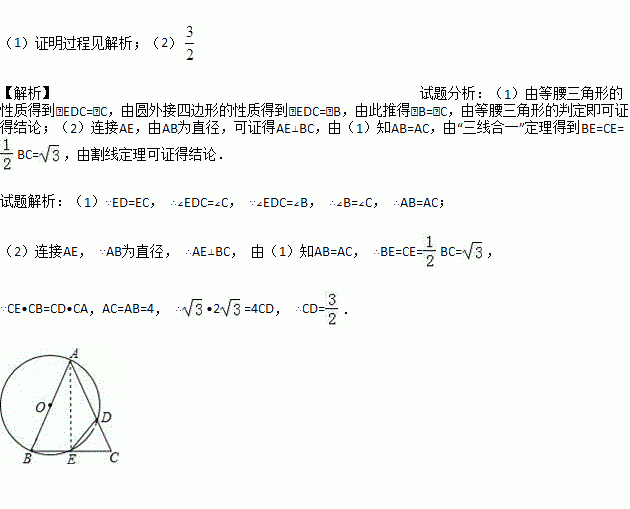 已知△ABC,以AB为直径的⊙O分别交AC于D,BC于E,连接ED,若ED=EC.