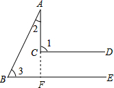 分析:延长AC交BE于点F,由三角形外角的性质可知,∠CFE=∠2+∠3,再根据∠1=∠2+∠3可得出∠1=∠CFE,由此可得出结论.