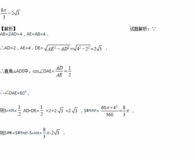 ,以点A为圆心,AB为半径的圆弧交CD于点E,交AD的延长线于点F,则图中阴影部分的面积为___________.(结果保留