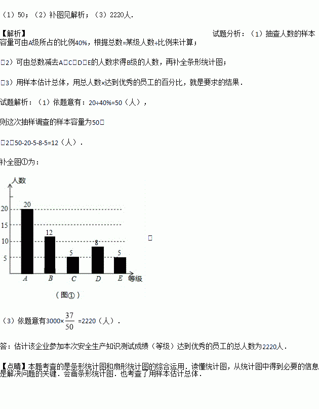 为了强化同学们的校园安全意识,某学校组织全校3000名同学参加校园安全知识测试,成绩记为A,B,C,D,E共5个等级,为了解本次测试的成绩(等级)情况,现从中随机抽取部分同学的成绩(等级),统计整理并制作了如下的统计图: