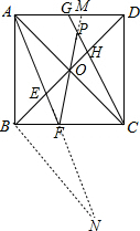 分析 设正方形ABCD的边长为a,则AB=BC=AD=a,根据正方形性质得出∠ABC=90°,AD∥BC,OD=OB,由勾股定理求出AC=$\sqrt{2}$a,延长FP交AD于M,过B作BN∥AC交AF的延长线于N,证△NFB∽△AFC求出BF=($\sqrt{2}$-1)a,CF=(2-$\sqrt{2}$)a,证△BOF∽△DOM求出DM=BF=($\sqrt{2}$-1)a,求出GM=($\frac{3}{2}-\sqrt{2}$)a,证△GMP∽△CFP,得出$\frac{PG}{PC}$=$\frac{GM}{CF}$,即可求出答案.