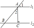 如图所示,已知直线l1,l2被直线AB所截,AC⊥l2于点C,若∠1=50°,∠2=40°,则l1与l2平行吗?请说明理由.