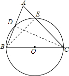 解答 解:(1)连接CD,∵BC为半圆的直径,∴∠BDC=90°,又BC=4,BD=2,∴∠BCD=30°,∴∠ABC=60°;(2)连接BE,∵∠BDC=90°,又BC=4,CE=2$\sqrt{2}$,∴∠BCE=45°,∴∠A=180°-∠ABC-∠A=75°.