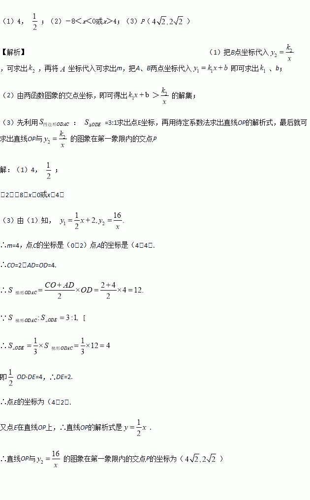 (3)过点A作AD⊥x轴于点D,点P是反比例函数在第一象限的图象上一点.设直线OP与线段AD交于点E,当