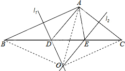 (2)由在△ABC中,AB边的垂直平分线l1交BC于D,AC边的垂直平分线l2交BC于E,l1与l2相交于点O,可得OA=OB=OC,继而求得答案;