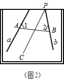 ①如图2,画PC∥a,量出直线b与PC的夹角度数,