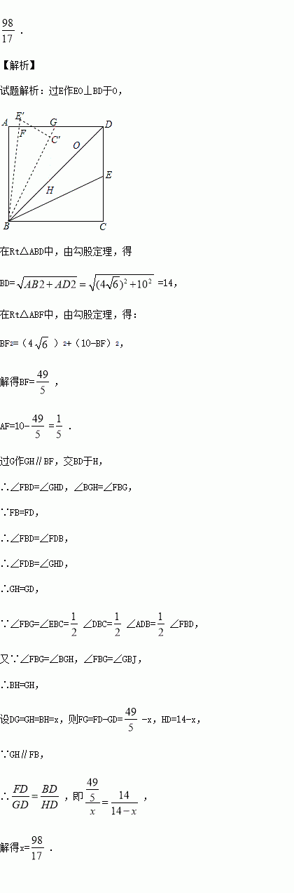 ,AD=10.连接BD,∠DBC的角平分线BE交DC于点E,现把△BCE绕点B逆时针旋转,记旋转后的△BCE为△BC′E′.当射线BE′和射线BC′都与线段AD相交时,设交点分别为F,G.若△BFD为等腰三角形,则线段DG长为 .