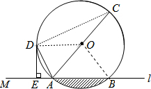 分析:(1)连结OD,由OA=OD得∠OAD=∠ODA,由AD平分∠CAM得∠OAD=∠DAE,则∠ODA=∠DAE,所以DO∥AB,利用DE⊥AB得到DE⊥OD,然后根据切线的判定定理即可得到结论;