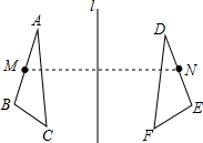 如图所示,在图形中标出点A、B、C关于直线l的对称点D、E、F.若M为AB的中点,在图中标出它的对称点N.若AB=5,AB边上的高为4,则△DEF的面积为多少?