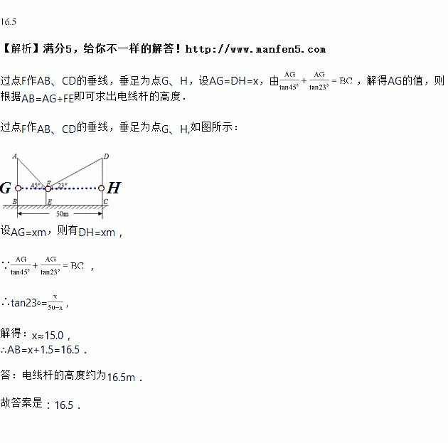 ,则电线杆的高度约为________![]()