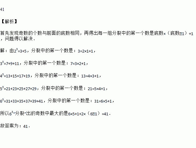 一个自然数的立方,可以分裂成若干个连续奇数的和。例如: