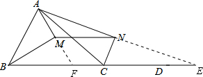 分析:延长AB交BC于点F,延长AN交BC的延长线于点E,则可得MN为△AEF的中位线,且BF=AB,CE=AC,可得EF=BC+AC-AB,又MN=
