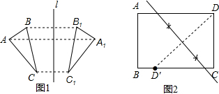(2)有一张矩形纸片ABCD(如图2),要将点D沿某条直线翻折180°,恰好落在BC边上的点D′处,请在图中作出该直线.