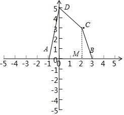 则四边形ABCD的面积=△DAO的面积+△BCM的面积+梯形CDAM的面积=$\frac{1}{2}$×1×5+$\frac{1}{2}$×1×3+$\frac{1}{2}$×2×(3+5)=12;