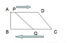 如图,在四边形ABCD中,AD∥BC,∠B=90°,AB=8cm,AD=24cm,BC=26cm,动点P从点A出发,以1cm/s的速度向点D运动;动点Q从点C同时出发,以3cm/s的速度向点B运动。规定当其中一个动点到达端点时,另一个动点也随之停止运动。设运动时间为t,求: