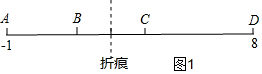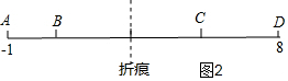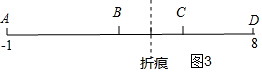 (3)分三种情况进行讨论:设折痕处对应的点所表示的数是x,如图1,当AB:BC:CD=1:1:2时,所以设AB=a,BC=a,CD=2a,得a+a+2a=9,a=$\frac{9}{4}$,得出AB、BC、CD的值,计算也x的值,同理可得出如图2、3对应的x的值.