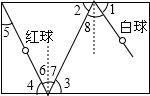 解答 解:如图,∵∠5=25°,∴∠6=∠5=25°,∵∠3=∠4,∴∠7=∠6=25°,∴∠8=∠7=25°,∠2=90°-∠8=90°-25°=65°,∴∠1=∠2=65°.答:∠1等于65度时,才能保证红球能直接入袋.