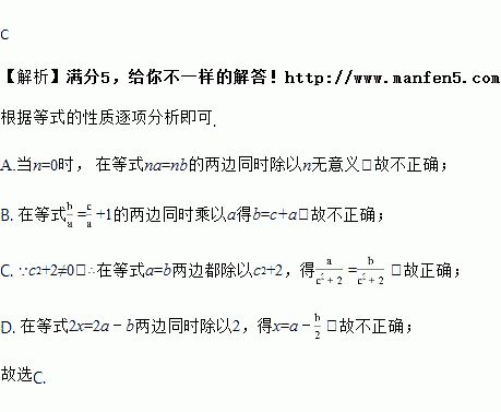 D. 在等式2x=2a﹣b两边同时除以2,得x=a﹣b