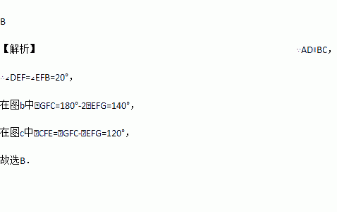 如图a是长方形纸带,∠DEF=20°,将纸带沿EF折叠成图b,再沿BF折叠成图c,则图c中的