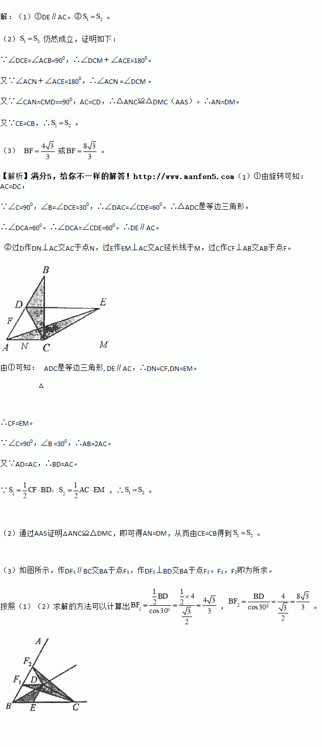 如图1,将两个完全相同的三角形纸片ABC和DEC重合放置,其中∠C=900,∠B=∠E=300.