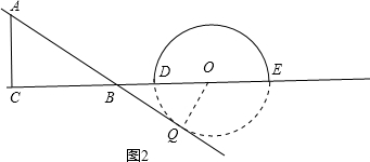 ②当点O运动到B点的右侧,且OB=12cm时,如图2,过点O作OQ⊥直线AB,垂足为Q.