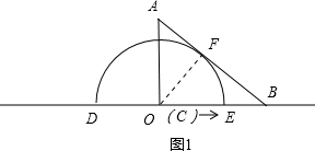 即当O点运动到C点时,半圆O与△ABC的边AB相切;