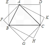 | 解:(1)如果一个三角形和一个平行四边形满足条件:三角形的一边与平行四边形的一边重合,三角形这边所对的顶点在平行四边形这边的对边上,则称这样的平行四边形为三角形的“友好平行四边形”. (2)此时共有2个友好矩形,如图的BCAD、ABEF. 易知,矩形BCAD、ABEF的面积都等于△ABC面积的2倍, ∴△ABC的“友好矩形”的面积相等. (3)此时共有3个友好矩形,如图的BCDE、CAFG及ABHK, 其中的矩形ABHK的周长最小. 证明如下: 易知,这三个矩形的面积相等,令其为S,设矩形BCDE、CAFG及ABHK的周长分别为L1,L2,L3,△ABC的边长BC=a,CA=b,AB=c, 则:L1= ∴L1﹣L2=( ∴L1﹣L2>0,即L1>L2, 同理可得,L2>L3, ∴L3最小,即矩形ABHK的周长最小. |