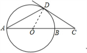 如图,AB是⊙0的直径,AD是弦,切线CD交AB延长线于C,∠ACD=45°,