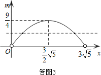 ∴m=$\frac{1}{5}$a(3$\sqrt{5}$-a)=-$\frac{1}{5}$a2+$\frac{3\sqrt{5}}{5}$a(0<a<3$\sqrt{5}$),