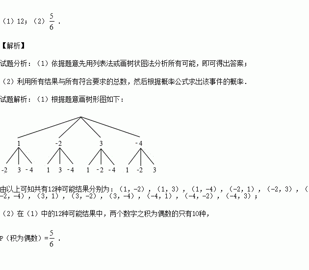 一个不透明的布袋里装有4个大小,质地都相同的乒乓球,球面上分别标有数字1,-2,3,-4,小明先从布袋中随机摸出一个球(不放回去),再从剩下的3个球中随机摸出第二个乒乓球.