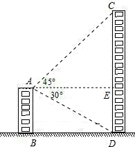 分析 作AE⊥CD于E,可得ED=AB=12,AE=12$\sqrt{3}$,在Rt△AEC中,求得AE=ED=12$\sqrt{3}$,继而可求得楼CD的高度.