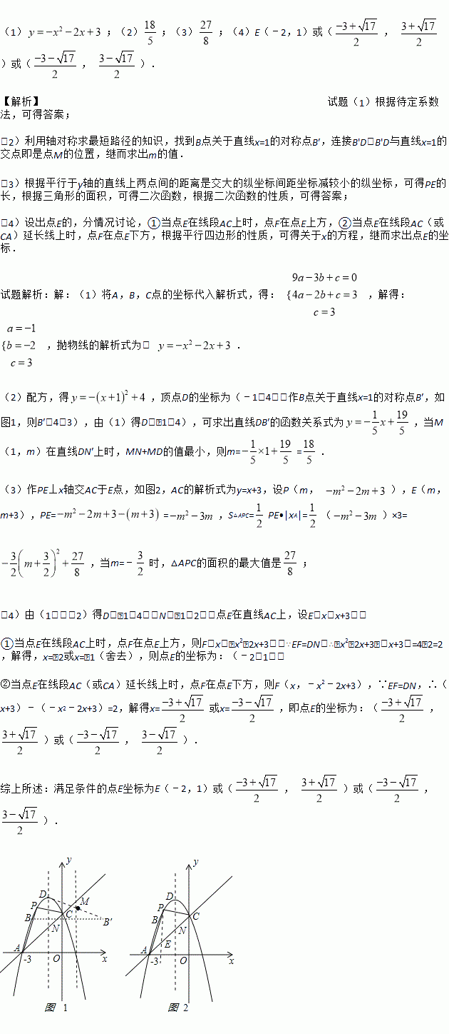 (4)若抛物线的对称轴与直线AC相交于点N,E为直线AC上任意一点,过点E作EF∥ND交抛物线于点F,以N,D,E,F为顶点的四边形能否为平行四边形?若能,求点E的坐标;若不能,请说明理由.