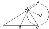 (2)当四边形ODEC为正方形时,∠OCD=45°,由于AC为直径得到∠ADC=90°,于是得到∠A=∠ADC-∠OCD=90°-45°=45°,根据∠ACB=90°,于是得到结论△ABC是等腰直角三角形;