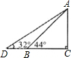 在Rt△ACD中,AD=$\frac{AC}{sin32°}$≈6.554(米),∴AD-AB=6.554-5≈1.55(米).