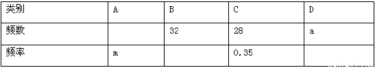 (2)若A类学生数比D类学生数的2倍少4,求表中a,m的值;