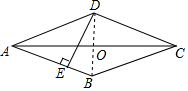 分析 连接BD交AC于O,根据菱形的性质可得AB=BC=CD=AD,AO=$\frac{1}{2}$AC=12,AO⊥BD,BD=2BO,首先计算出AB的长,再利用勾股定理计算出BO的长,进而可得BD的长,然后利用面积公式可得DE的长.