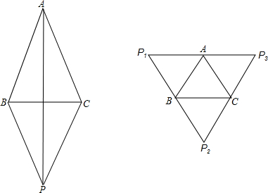 如图,等腰△ABC中,AB=AC,在△ABC所在平面内找一点P,使P与A、B、C形成一个菱形,通过作图,你能找出符合条件的点有