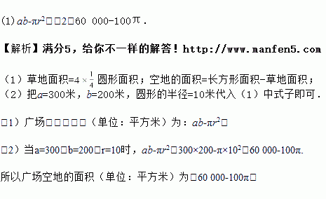 (2)若长方形的长为300米,宽为200米,圆形的半径为10米,计算广场空地的面积(计算结果保留π).