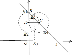 分析 利用待定系数法求得直线AB的解析式为y=-x+6,根据解析式y=-x+6求得A、B的坐标,因为点C(2,4)在直线AB上,所以BC=2$\sqrt{2}$,以D为圆心,以2为半径作圆,交OB于B和E2,以B为圆心,以2为半径作圆,交AB于E3和E4,作DC的垂直平分线交OA于E5,从而求得E的坐标.