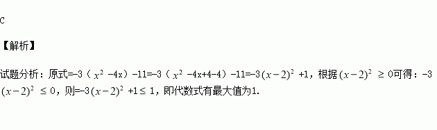 问题:已知x可取任何实数,则二次三项式-3x2+12x-11的最值情况是( )